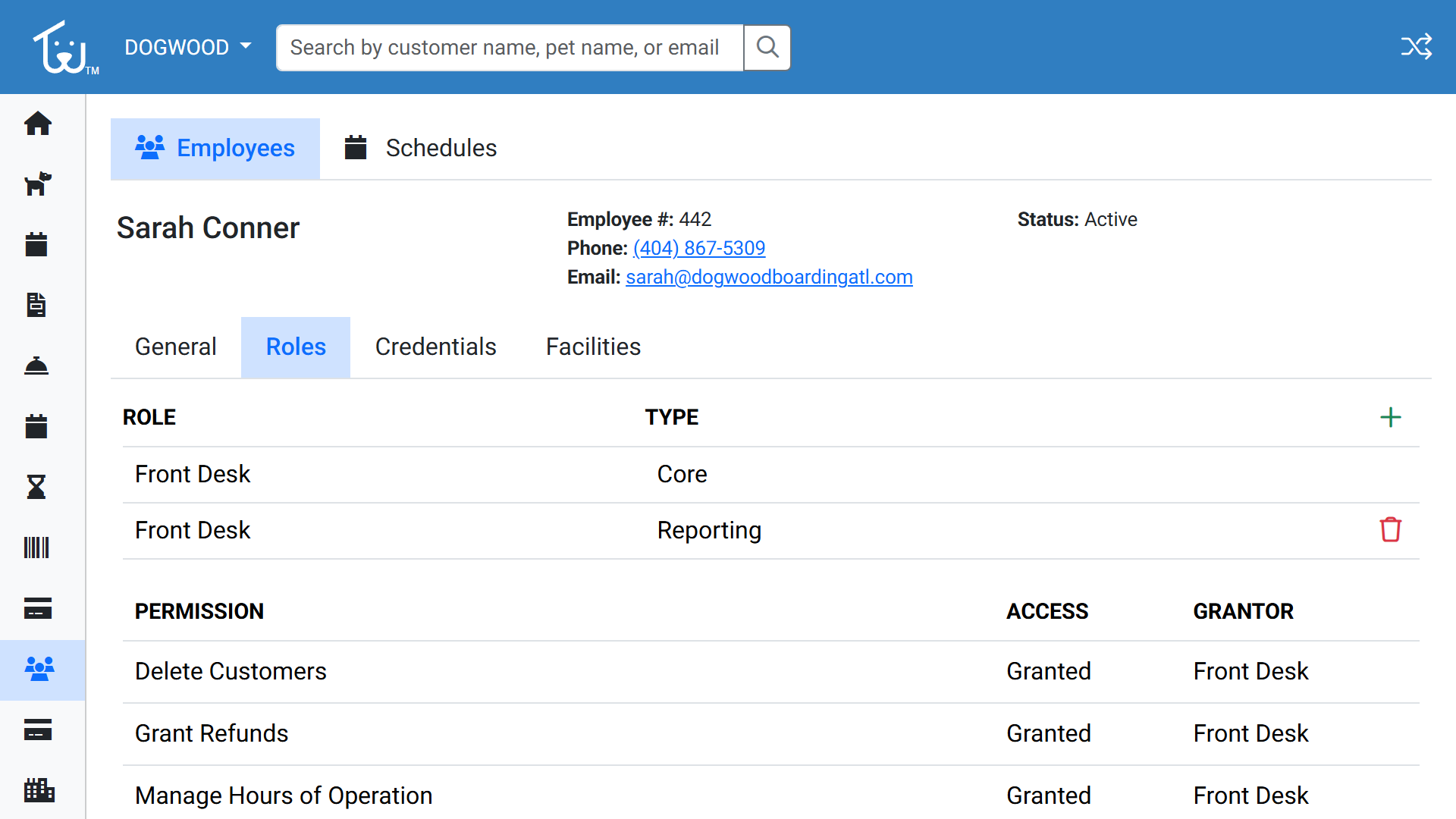 Configure application permissions to a detailed degree with Petsoft's role-permission hierarchy to ensure that employees have access to just what they need.